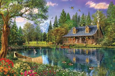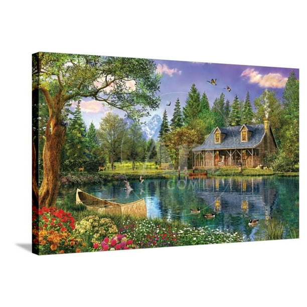 Crystal Lake Cabin Scenic Stretched Canvas Wall Art By Dominic Davison Sold By Artcom Walmart Com